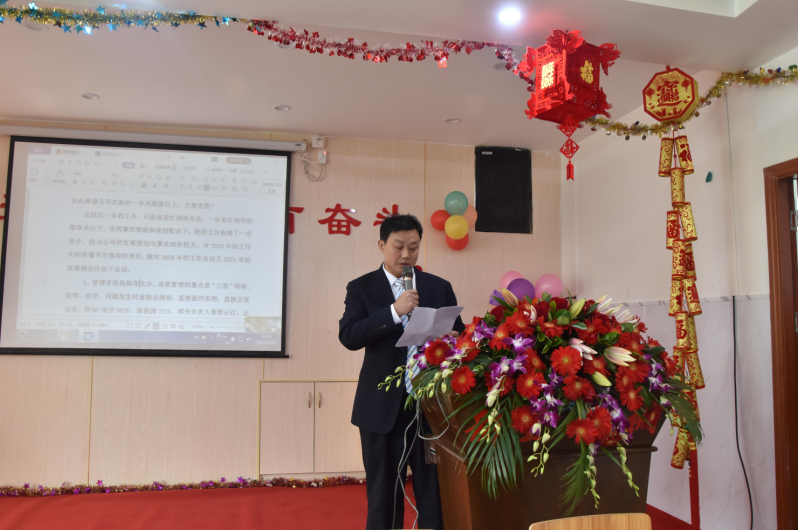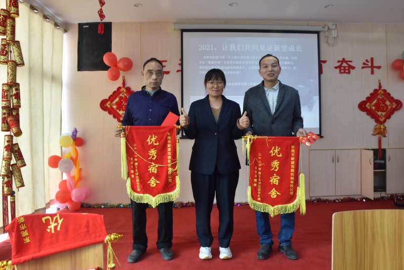 東莞市新望包裝機械有限公司2020年年度總結大會于2021年1月24日下午14:30在公司食堂隆重舉行。年終會議由行政部經理張麗君主持。公司黨支部書記潘婉荷對黨支部成立5年以來的黨員活動和黨建工作做了匯報和總結。公司運營管理中心和技術創新服務中心兩套班子成員緊靠大會主題“征途漫漫,惟有奮斗”進行總結與探討,盤點過往成績與不足,為公司2021年戰略規劃獻計獻策,常委班子成員都發表了熱情洋溢的講話。公司總經理羅永輝做了《前程無坦途 唯有奮起爭》的年度工作報告。