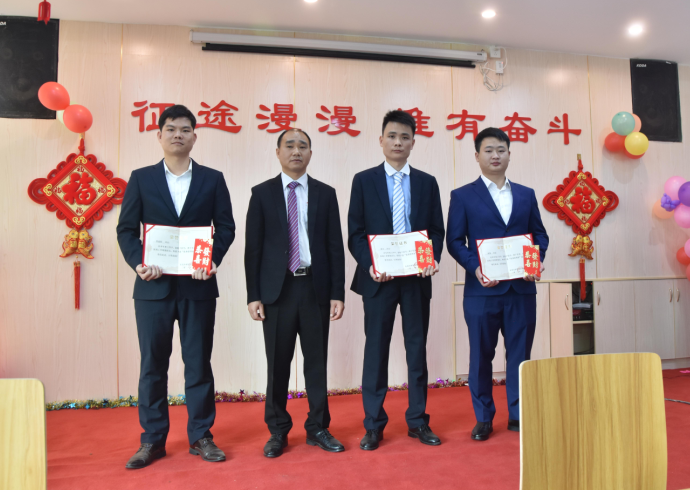 副總經理羅永新為李開、羅執輝、唐明階頒發技改鼓勵獎