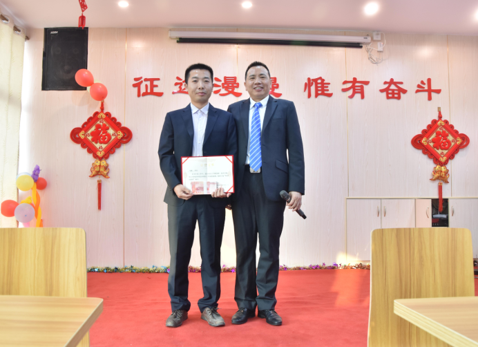 市場營銷部經理羅曉明為付新民、黃文頒發優秀管理獎