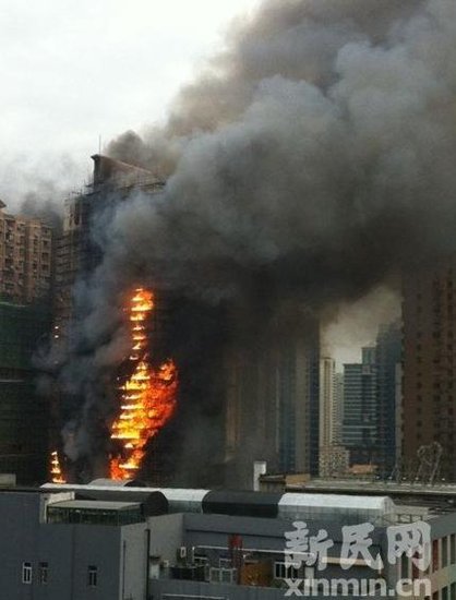 據前方記者報道,起火高樓外表已被燒黑,現場火勢洶洶,濃煙滾滾;附近道路地面上覆蓋了大量灰燼,水流滿地;周邊方圓數百米內充滿了煙霧和刺鼻的氣味;來自交警方面的信息稱,失火大樓周圍數條道路已被封鎖;馂陌l生初始不僅消防車緊急出動,警用直升飛機也參與高樓救援。