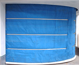 4、不需水幕保護,減少了消防水的用量 技術指標 1、 背火面溫升:較高平均溫升為61.8•C,較高單點溫升為82.5•C。 2、 耐火極限:大于240min. 3、 導軌寬度:不小于500mm. 4、 簾面尺寸:厚度18mm,簾面拼縫每3m內2條。 5、 連接方式:簾面與座板連接采用螺栓連接,連接件間距450mm. 6、 啟閉速度:升降速2.5m/min,自重降速4m/min.