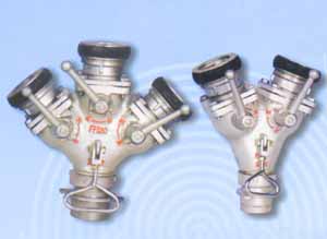 分水器裝置于水帶干線上; 每一個(gè)分水器有一個(gè)進(jìn)水口和幾個(gè)出水口,可以同時(shí)使用,也可以分別使用; 出水口上均有閥門裝置,可以隨時(shí)關(guān)閉,控制水流,便于增加和調(diào)換支線水帶.