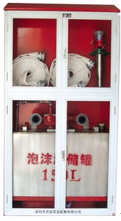 泡沫消火栓箱是由箱體、泡沫液儲罐、負壓比例混合器、空氣泡沫槍、水帶、等主要部件組成。以泡沫滅火為主,也可以關閉泡沫閥門,用直流水槍噴水滅火,作為泡沫/水噴淋系統的補充。