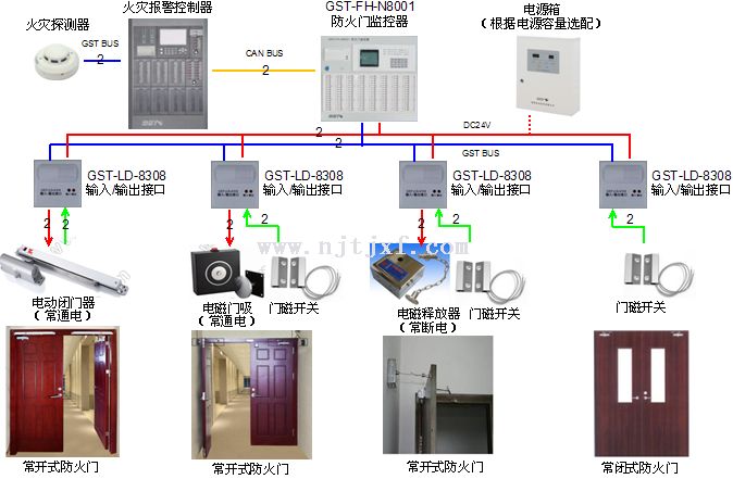 防火門是建筑物中使用比較廣泛的防火分隔構件,而部分單位及人員在使用防火門時不能有效按照規范使用,造成可能存在的安全隱患,至此相關部門要求設置防火門監控設備的使用,以保障產品功能有有效性。國家標準委批準發布強制性國家標準《防火門監控設備》,標準編號為GB29364-2012,于2013年7月1日實施。 無論常閉或者常開式防火門都有可能出現遇火時無法有效關閉,尤其是普通的常閉防火門,較多人出入后不能及時的進行門體關閉,或者閉門器出現問題沒有及時發現,一旦發生火災,現場沒人操作的情況下,防火門形同虛設,造成的損失可能無法現象。 產品功能主要在于輔助保障防火門工作的正常性,防止發生火災時門體無法關閉,通過增加自動啟閉系統能更好監控防火門的使用,對處于非正常狀態的防火門給出報警提示,使其恢復到正常工作狀態,降低了事故故障幾率也增長了產品使用壽命。 GB29364-2012《防火門監控設備》規定了防火門監控設備、防火門電磁釋放器、防火門門磁開關、常閉防火門電動閉門器的基本功能,以及防火門監控設備的故障報警功能、自檢功能和電源功能。該標準的發布、實施將有利于防火門監控設備的設計、生產、使用和質量監督。 防火門監控系統又分為常開防火門監控系統與常閉式防火門監控系統。 監控系統的組成: 防火門監控設備、防火門監控模塊、防火門閉門器、防火門磁開關和防火門磁釋放裝置組成。 常閉防火門監控系統: 日常情況下,防火門處于關閉狀態可以保護區域內的財產安全,火災發生的時候,可以在人員慌張混亂的情況下,通過報警和語音提示,快速有效引導人員快速疏散逃生。 常開式防火門監控系統: 日常情況下,防火門是保持開門狀態,便于人員通行。火災的時候聯動閉門器消防聯動自動關閉防火門,門狀態信息都可反饋至消防監控室。