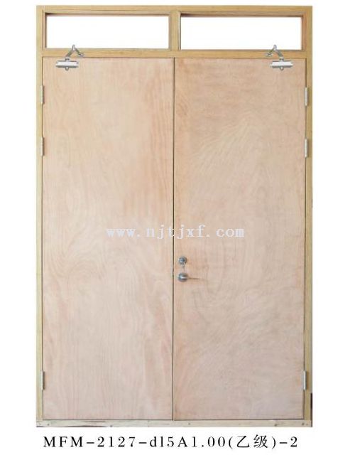 木質防火門產品說明: 產品選材經過特殊工藝加工而成,具有良好的阻燃性能,門體內部填充隔熱耐火材料,框、扇部另加防火板材使其具有很好的隔熱性、耐火穩定性和完整性。同時配備達到國家消防檢測機構檢測合格的五金配件。門體尺寸大小可根據用戶需要量身定做,充分尊重用戶意愿,按用戶要求規格設計、生產。產品質量達到防火門國家標準GB12955-2008要求性能。